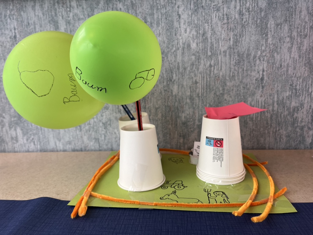 Zunächst wurden in einem partizipativen Prozess eine Vision und Wertebasis gemeinsam mit den Mitarbeitenden ermittelt. Ein wichtiger Teil davon war das Team-Event, an dem die Mitarbeitenden Ideen zur Umsetzung der Vision erarbeiteten. Diese umfassten u.a. Ideen und Prototypen zur Stärkung der ökologischen Nachhaltigkeit im Betrieb (siehe Fotos). Daraus entstand der Wunsch der Geschäftsführung, sich dem Thema Nachhaltigkeit intensiver zu widmen. Neben der Geschäftsführung wurden auch ausgewählte Mitarbeitende dazu geschult und es entstanden Projektideen, die direkt in die Umsetzung gebracht wurden.